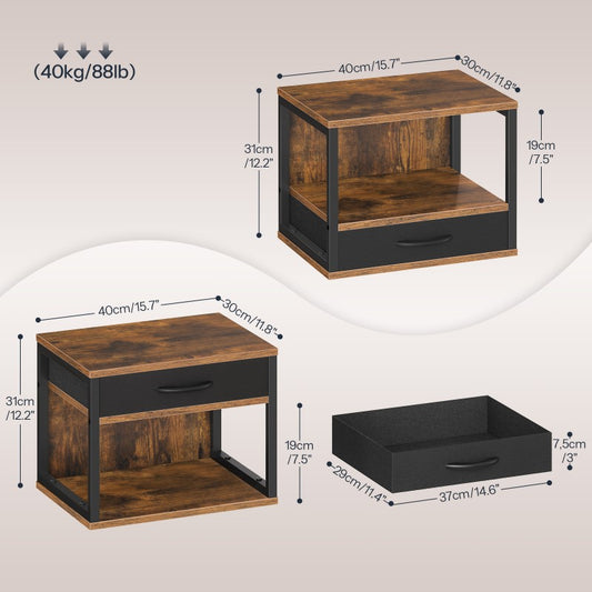 HOOBRO 2-Tier Desktop Printer Stand with Drawer, Under-Desk Printer Table with Storage Shelf, for Home Office, Kitchen, Fax Machine, Scanner