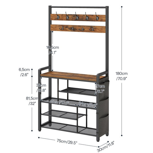 HOOBRO Hall Tree with Bench, Shoe Rack with Coat Rack, Coat Rack with Shoe Storage, 5 Tier Shoe Storage Organizer with Oxford Fabric Side Pockets, Coat and Shoe Rack Entryway