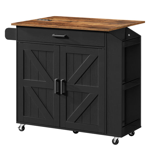 HOOBRO Kitchen Island with Drop Leaf Countertop & Power Outlet, Rolling Island Cart on Wheels, Kitchen Cart with Drawer & Spice Rack, Mobile Island Table for Kitchen