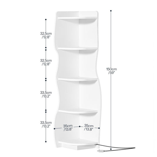 HOOBRO 5-Tier Corner Shelf Stand, Corner Shelf with LED Light, Corner Table with Bookshelf, Tall Storage Organizer Display Rack, for Small Spaces, Living Room, Office, Entryway