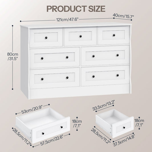 HOOBRO 7 Drawers Dresser for Bedroom, White Chest of Drawers with Storage, Farmhouse Bedroom Dresser Organizer for Living Room, Hallway, Entryway, Easy Assembly