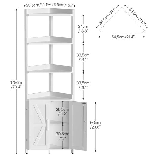 HOOBRO Corner Shelf with Storage, Tall Corner Cabinet, 5-Tier Bookshelf Stand, Storage Cabinet with Protective Fence, for Living Room
