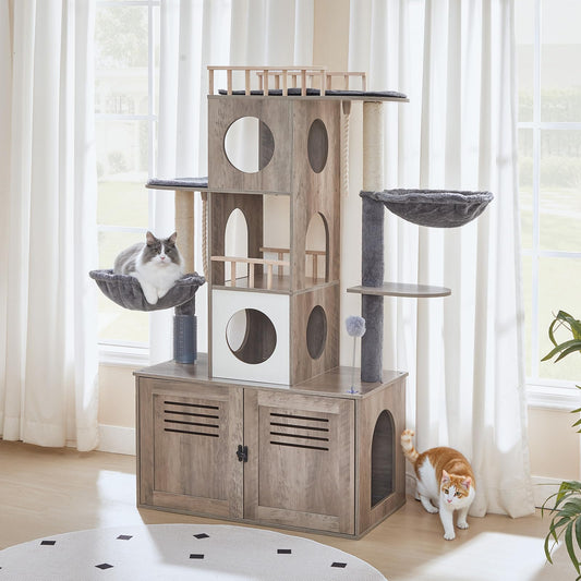 HOOBRO Wooden Cat Tree with Litter Box Enclosure