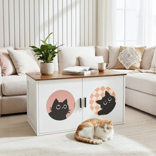 HOOBRO Cat Litter Box Enclosure with Cute Cat Pattern & Arched Entrance