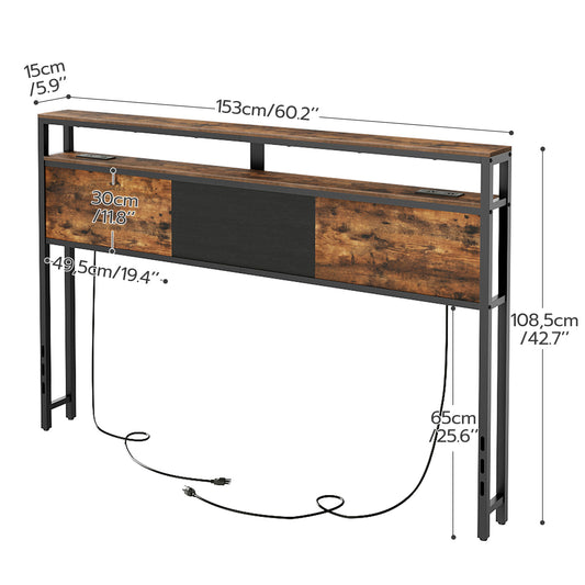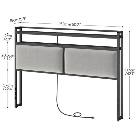 HOOBRO Industrial Style Headboard, LED Headboard with 2 Storage Shelves, Storage Rack with 2 Outlets and 4 USB Ports, Adjustable Height, Sturdy and Stable, Easy Assembly