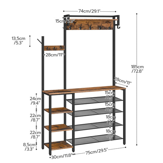 HOOBRO Hall Tree with Bench and Shoe Storage, Entryway Bench with Coat Rack, Shoe and Coat Rack for Entryway, Coat Rack with Shoe Storage and Reversible Storage Shelves