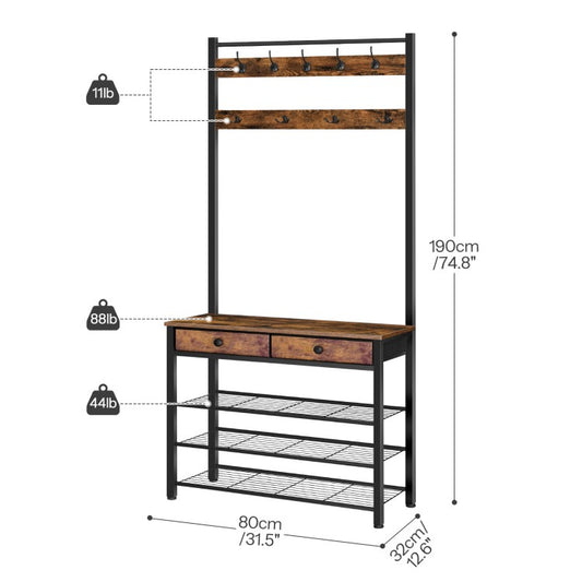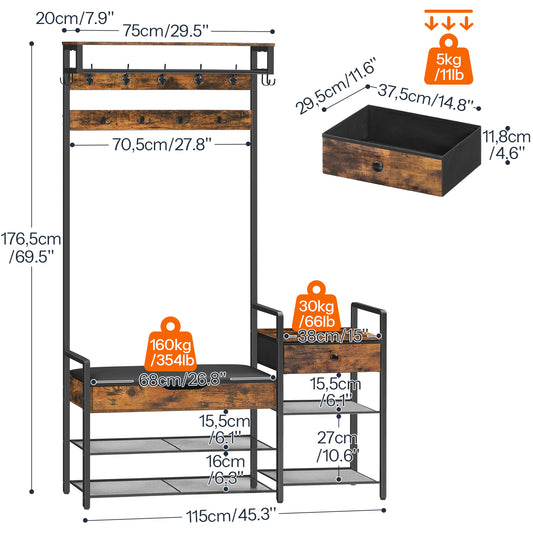 HOOBRO Hall Tree, Entryway Coat Rack Shoe Bench, Shoe and Coat Rack for Entryway, Hall Tree Coat Rack, with Non-Woven Fabric Drawer, for Entrance, Foyer