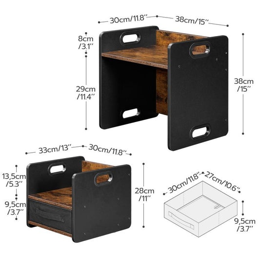 HOOBRO End Table with Charging Station, Narrow Side Table with 2 Fabric Drawers, Skinny Nightstand with Storage, Slim Bedside Table for Living Room, Small Spaces