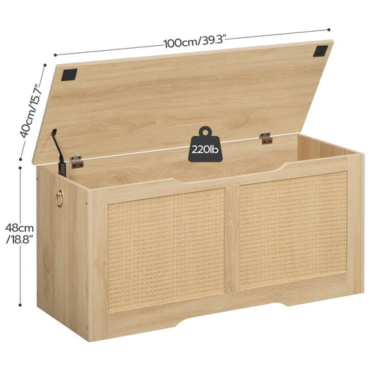 HOOBRO Storage Chest, 39.3" Storage Bench, Rattan-Like Storage Trunk, Sturdy Entryway Bench Supports 220 lb, Shoe Bench, Safety Hinge, U-Shaped Opening, Easy Assembly