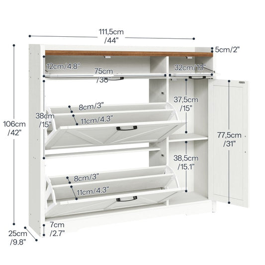 HOOBRO Farmhouse Shoe Storage Cabinet, Shoe Cabinet Storage for Entryway, Freestanding Shoe Organizer with 2 Flip Drawers, Narrow Shoe Cabinet with Adjustable Side Cabinet