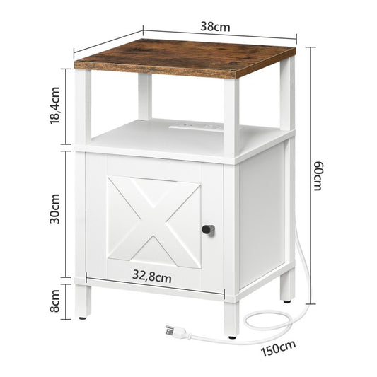 MAHANCRIS Farmhouse Nightstand with Charging Station, White Bedside Table with USB&Type-C Ports and Outlets, End Table with Storage, Night Stand for Bedroom