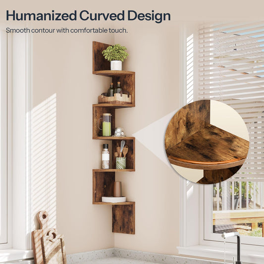 HOOBRO Retro Brown 5-Tier Wall-Mounted Corner Shelf /2PICS