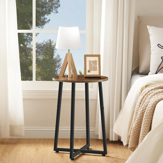 HOOBRO 15.7-inch Brown Round Side Table with Sturdy Metal Base