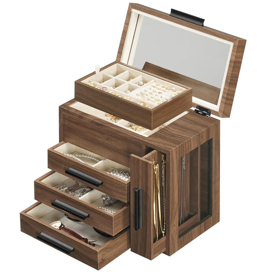 HOOBRO 5-Tier Wooden Jewelry Storage Box with Vertical Drawers