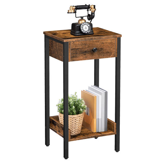 HOOBRO Tall Side Table with Drawers & Storage Shelves