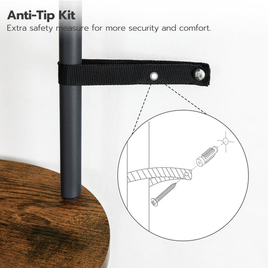 HOOBRO Retro Brown Three-Tier Narrow Side Table with Two Adjustable Flat Shelves