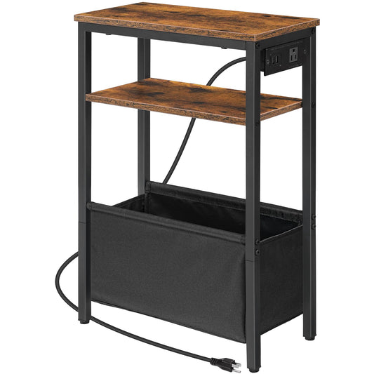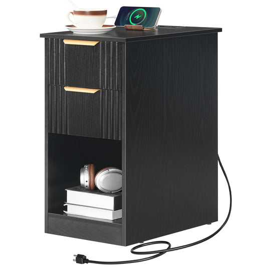 HOOBRO Small Narrow Side Table & Nightstand with Charging Station