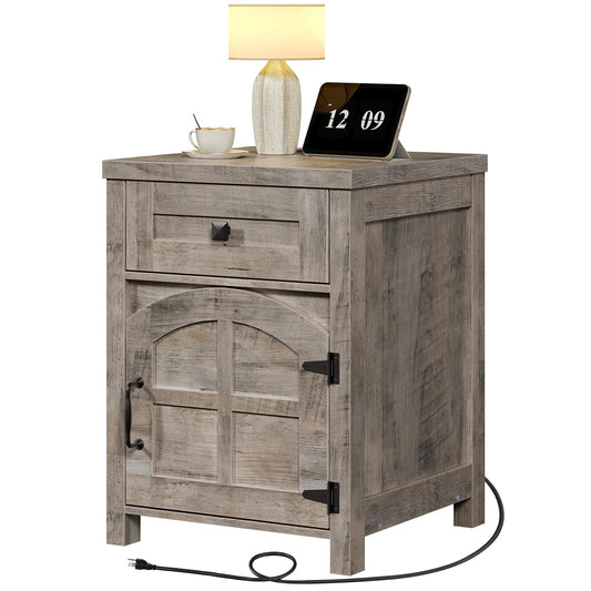 HOOBRO Farmhouse Wooden End Table & Nightstand with Charging Station