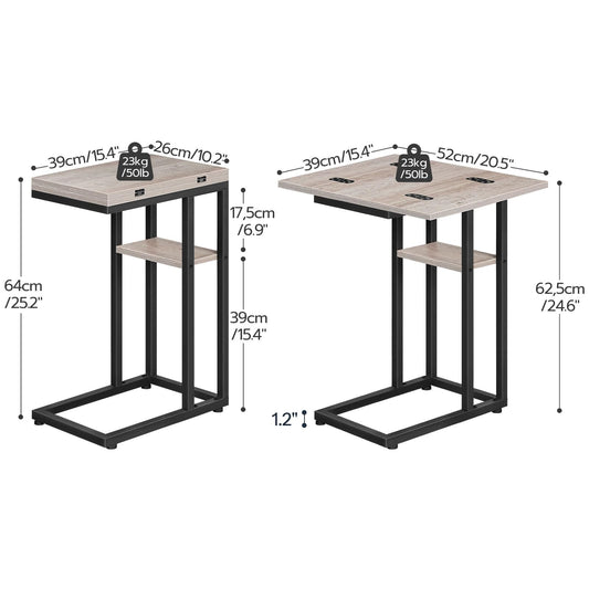 HOOBRO Narrow Side Tables with Charging Station / 2PICS