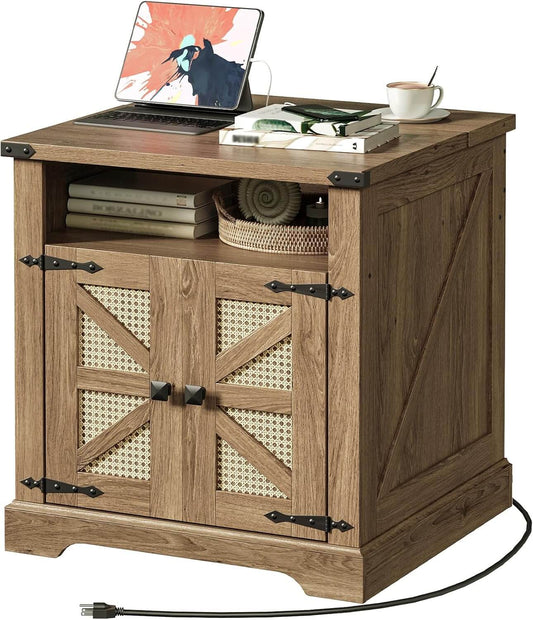 HOOBRO Farmhouse 23.6-Inch End Table with Charging Station