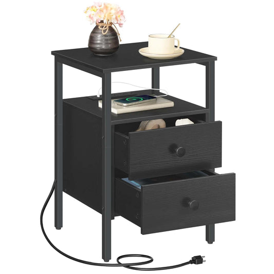 HOOBRO 24-inch Tall 2-Drawer Nightstand with Outlets