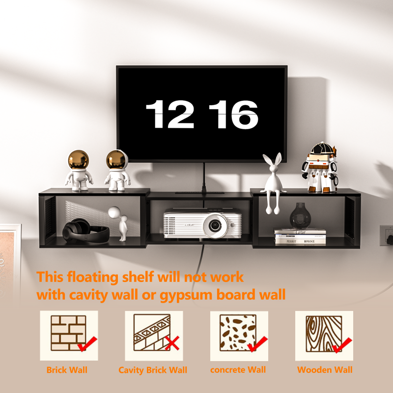 HOOBRO Floating TV Stand Wall Mounted with Power Outlet, Floating Entertainment Center for 55 inch TVs, Wall Mounted Entertainment Shelf with Storage, for Living Room, Bedroom
