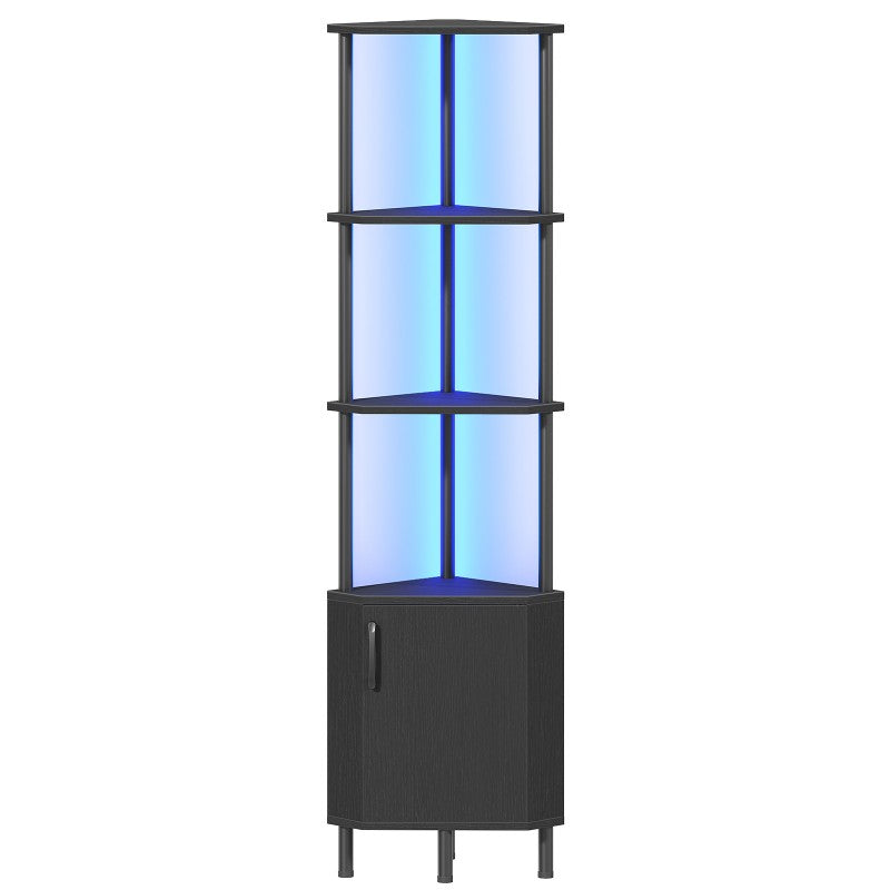 HOOBRO Corner Shelf with LED Light, Corner Cabinet with Storage and Doors, 5-Tier Industrial Narrow Bookshelf Display Rack, 59” Tall Standing Shelf, for Living Room, Kitchen