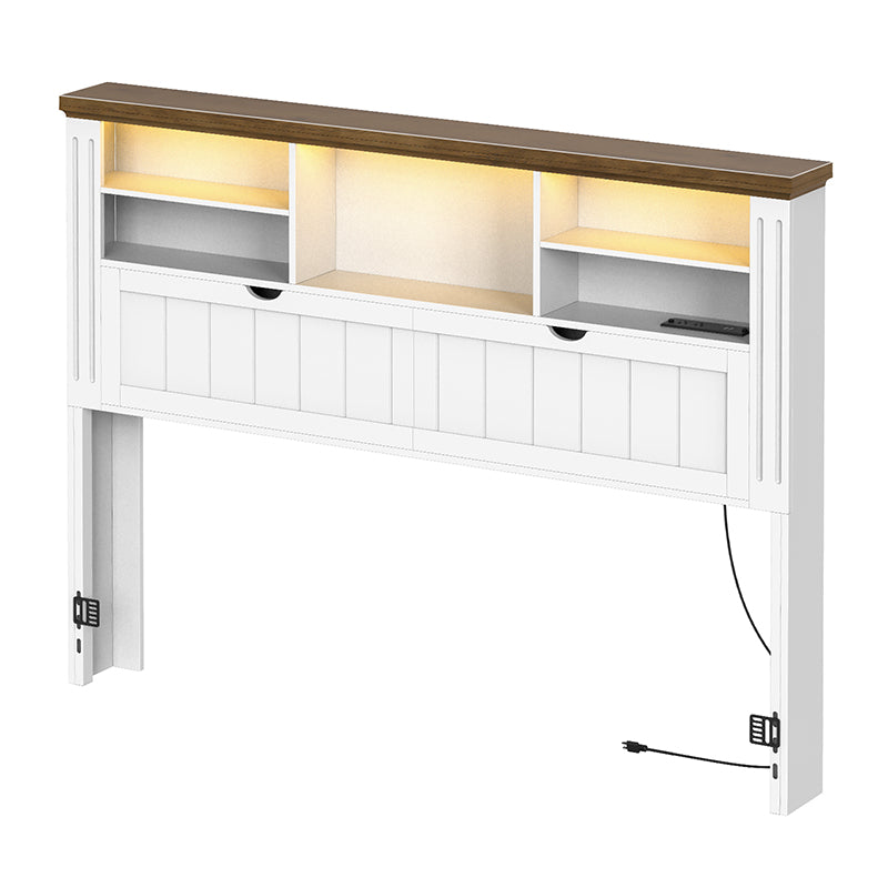 HOOBRO Queen Headboard Only, Bookcase Headboards with Charging Station and LED Lights, Farmhouse Headboard Queen Size with Storage, Hidden Storage Headboard for Queen Size Bed