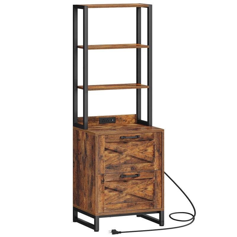 HOOBRO 2-Drawer File Cabinet with Shelves, Office Storage Filing Cabinet with Charging Station, Tall Printer Stand for Home Office, Fits Letter/Legal Size Hanging File Folders