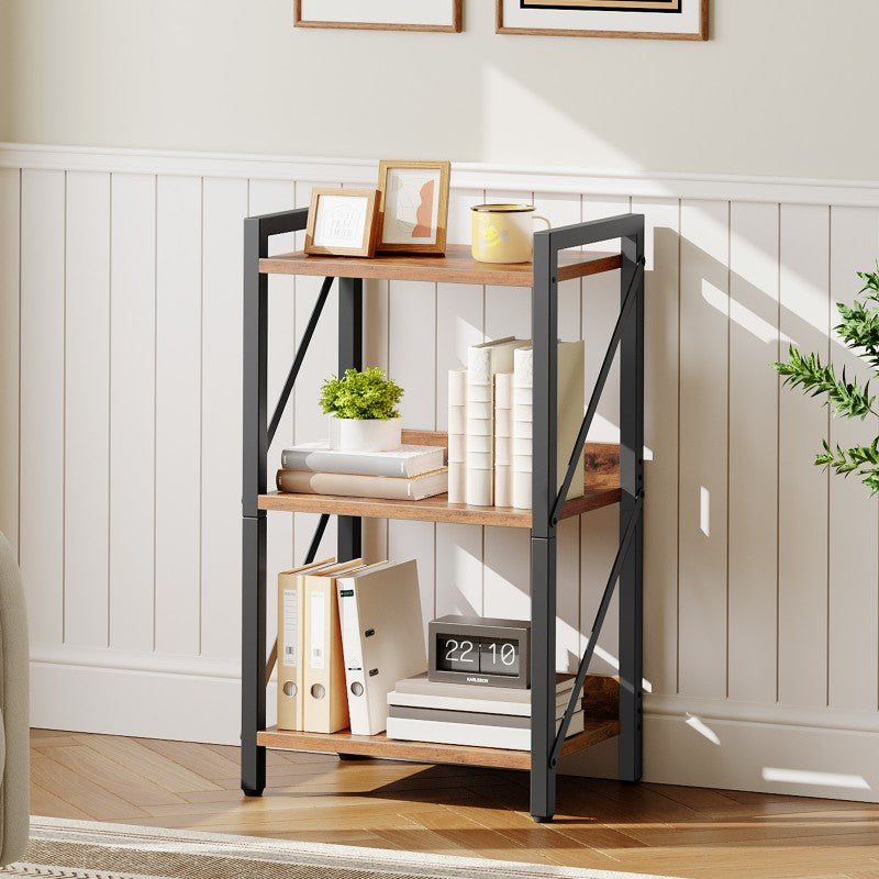 HOOBRO Bookshelf, 3-Tier Industrial Bookcase, Book Shelf Storage Organizer, Small Bookshelf with Metal Frame for Living Room, Bedroom, Home Office, Kitchen