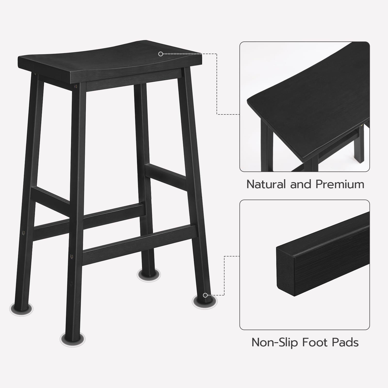 - More Comfortable: The stool surface of each bar stool adopts a saddle shape, which helps relieve fatigue and corrects sitting posture to a certain extent. Four pedals below in 2 heights are designed to create the better sitting experience for you