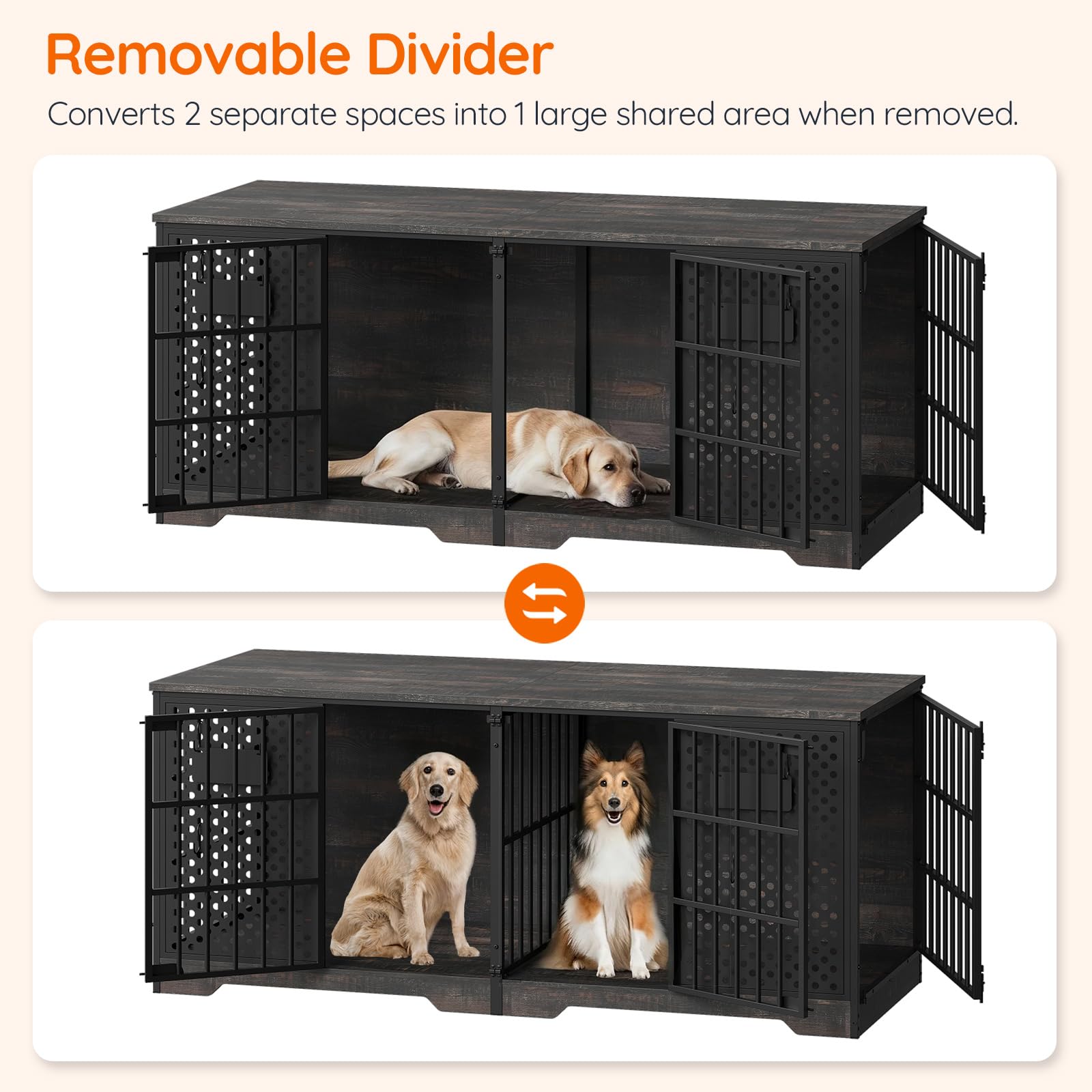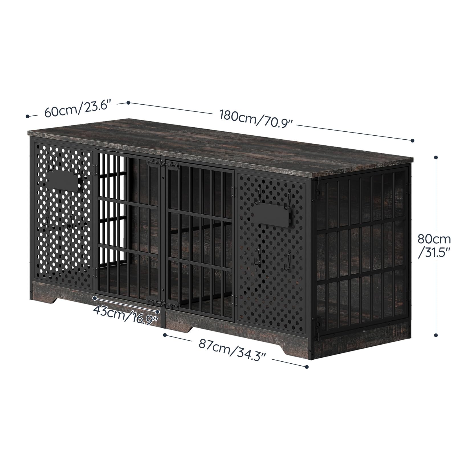 - Perfect for 2 Dogs or Large Breeds - Versatile Design: Measuring 70.9"L x 23.6"W x 31.5"H, this double dog crate features a removable divider, making it ideal for families with multiple dogs or large breeds. You can easily switch between one spacious enclosure for a big dog or two separate spaces for your furry companions. Note: This crate is not suitable for small spaces or small dogs.