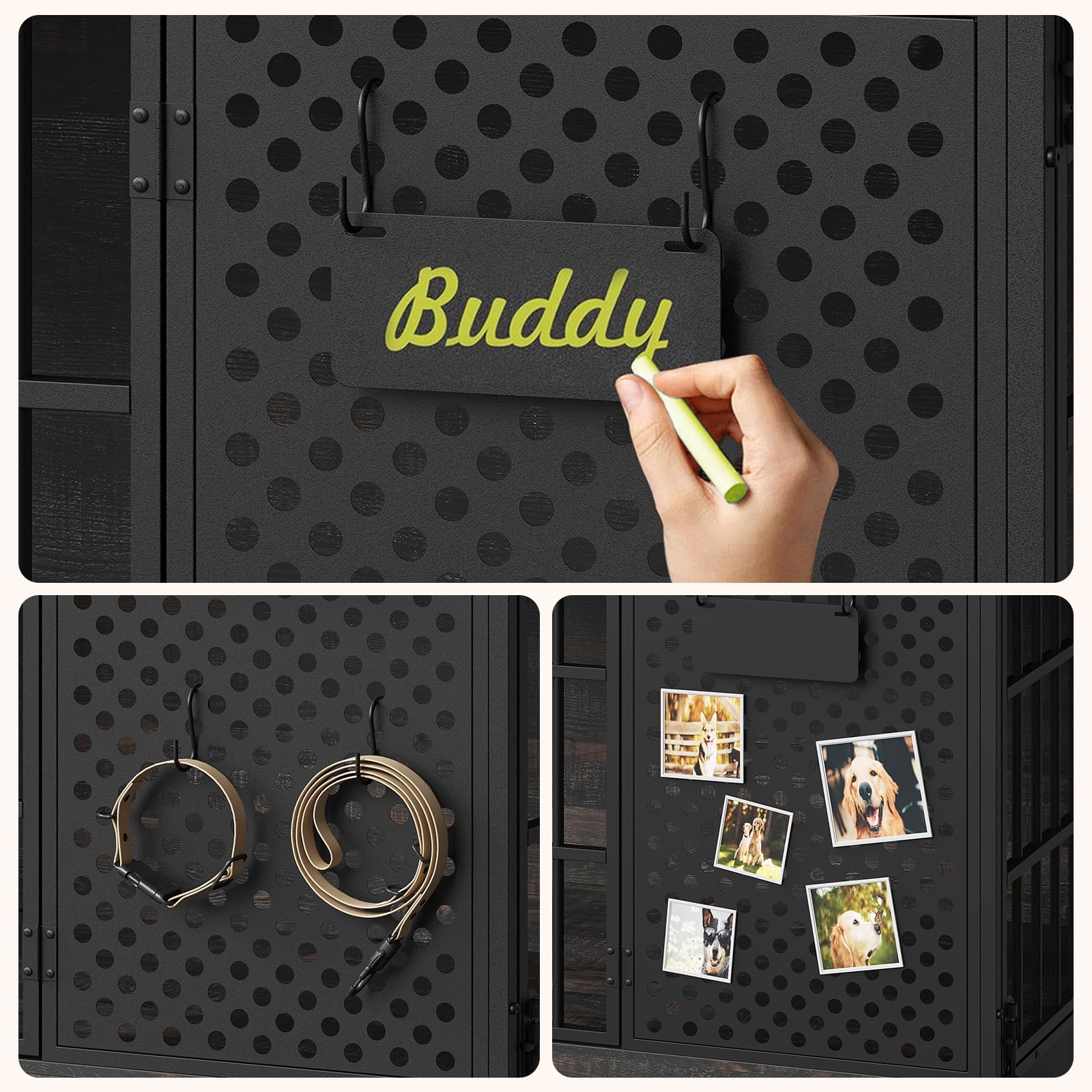 - Personalized Dog Crate - Make It Your Dog’s Unique Space: Transform your dog’s crate into a personalized haven with this customizable metal pegboard. It comes with 2 name tags and 8 S-hooks, allowing you to add a personal touch. Write your dog’s name with chalk, display your favorite photos, and hang leashes and accessories, creating a functional and tidy pet space that reflects your pet’s personality.
