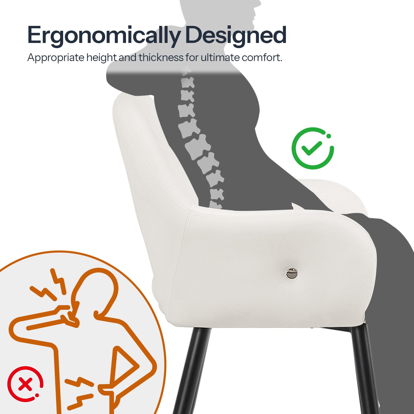 - Thick Cushioning for Comfort: These kitchen chairs offer soft yet reliable support with its thick HD sponge seat and backrest. The ergonomic design ensures a comfortable dining experience, making every meal a relaxing affair