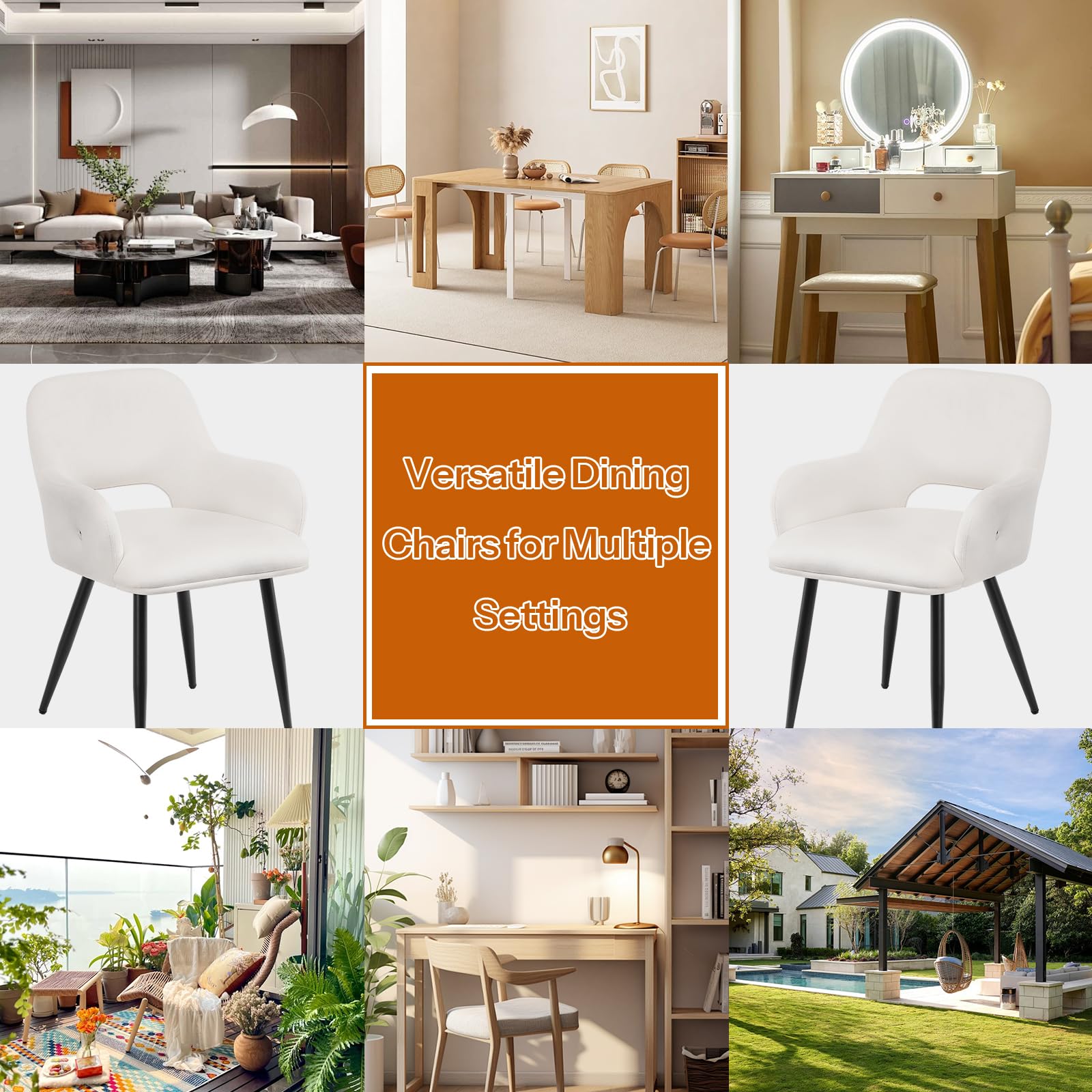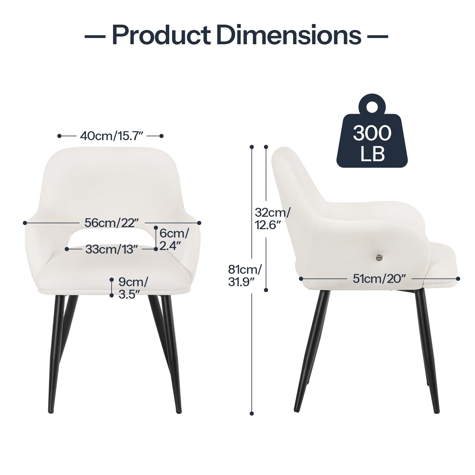 - Strong and Stable: These dining room chairs' legs are constructed from sturdy metal, built to last, ensuring each can bear up to 300 lb. Whether for family dinners, social gatherings, or personal relaxation, these dining chairs are ideal for various scenes
