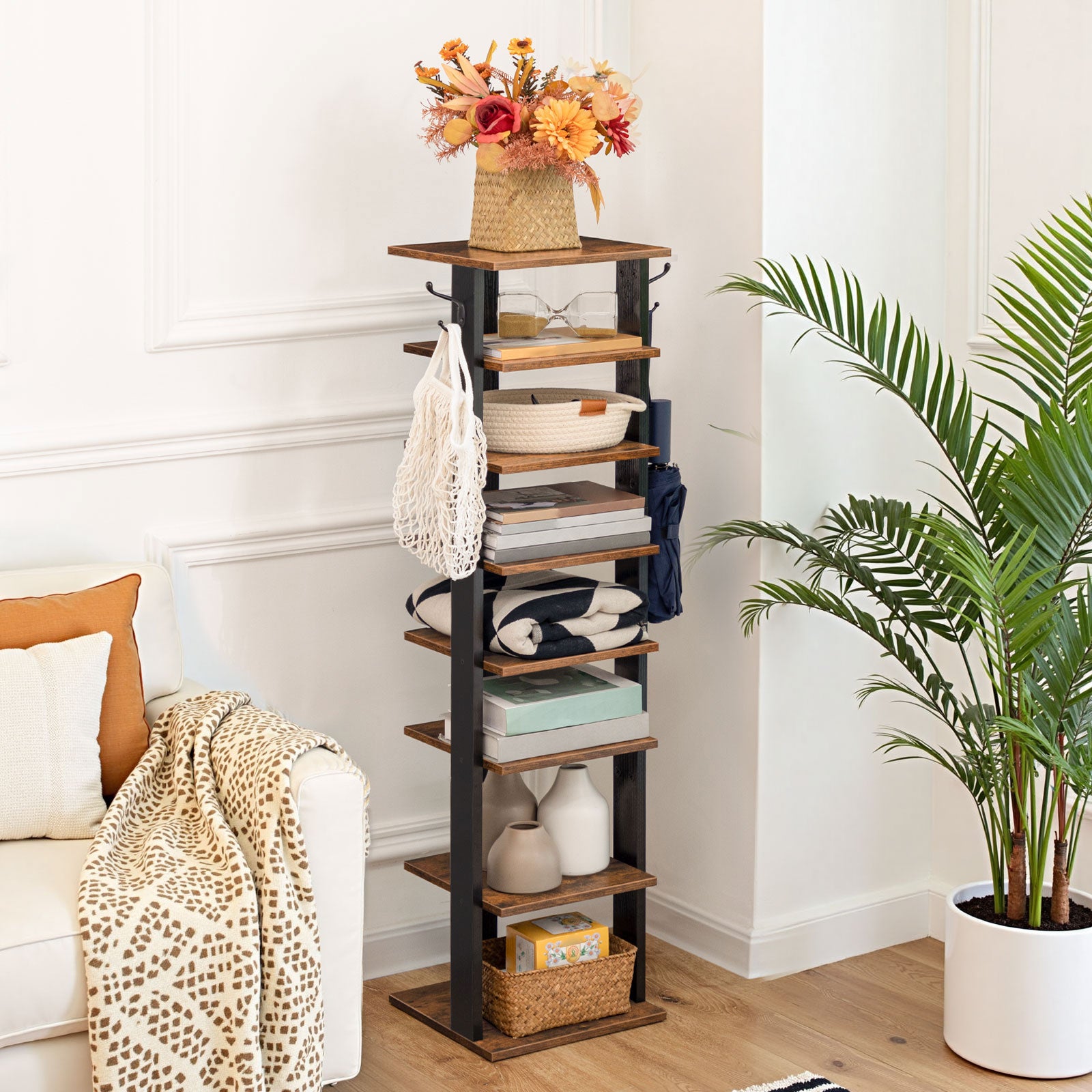 - Versatile Shoe Rack with Hooks: This vertical shoe rack is more than just a shoe rack. The thoughtful side hook design allows it to hang umbrellas, wallets, keys, and other small items, making it multi-functional and meeting your diverse storage needs.