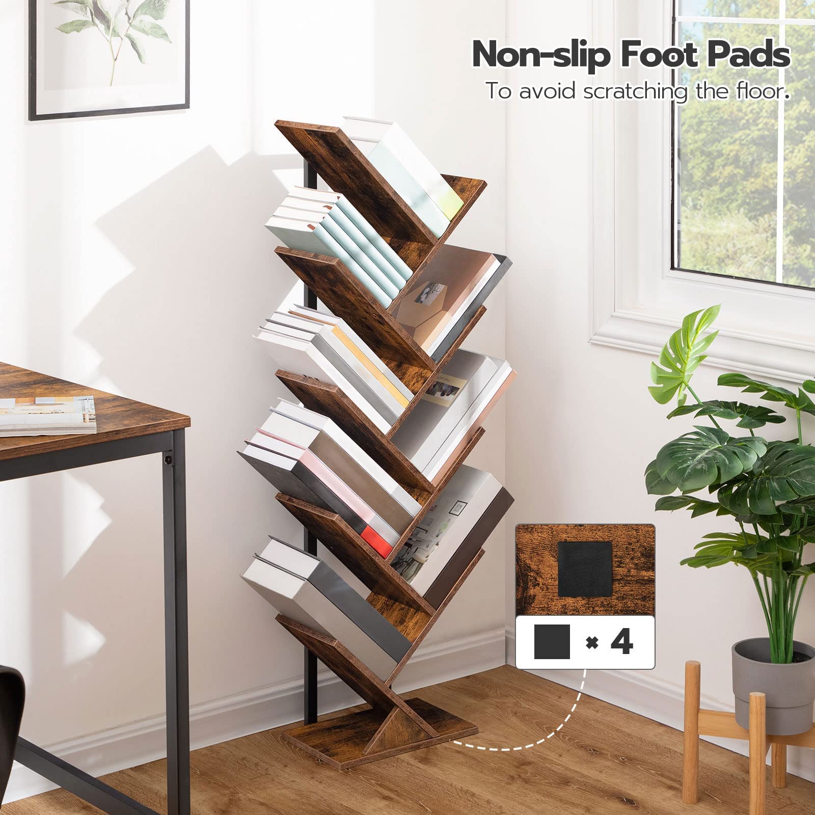 HOOBRO Vintage Brown 9-Tier Floor-Standing Wooden Tree-Shaped Bookshelf