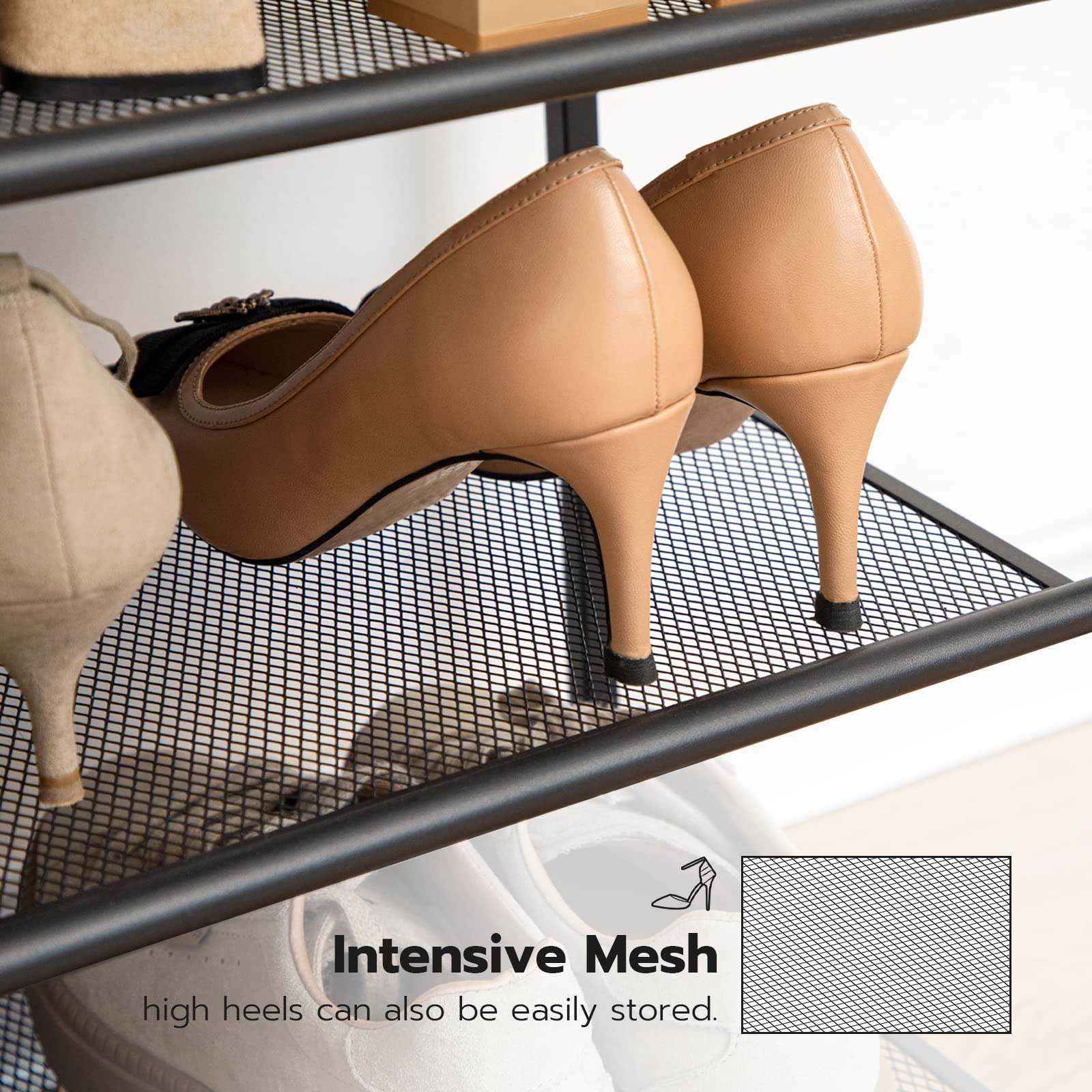 - All-Metal Shelves: Made of high-quality particleboard and metal mesh shelves, this large-capacity shoe shelf provides long-lasting performance and strength. Supports up to 22 lb on the top plate and 11 lb on each shelf. No aging, no bending - just what you expect
