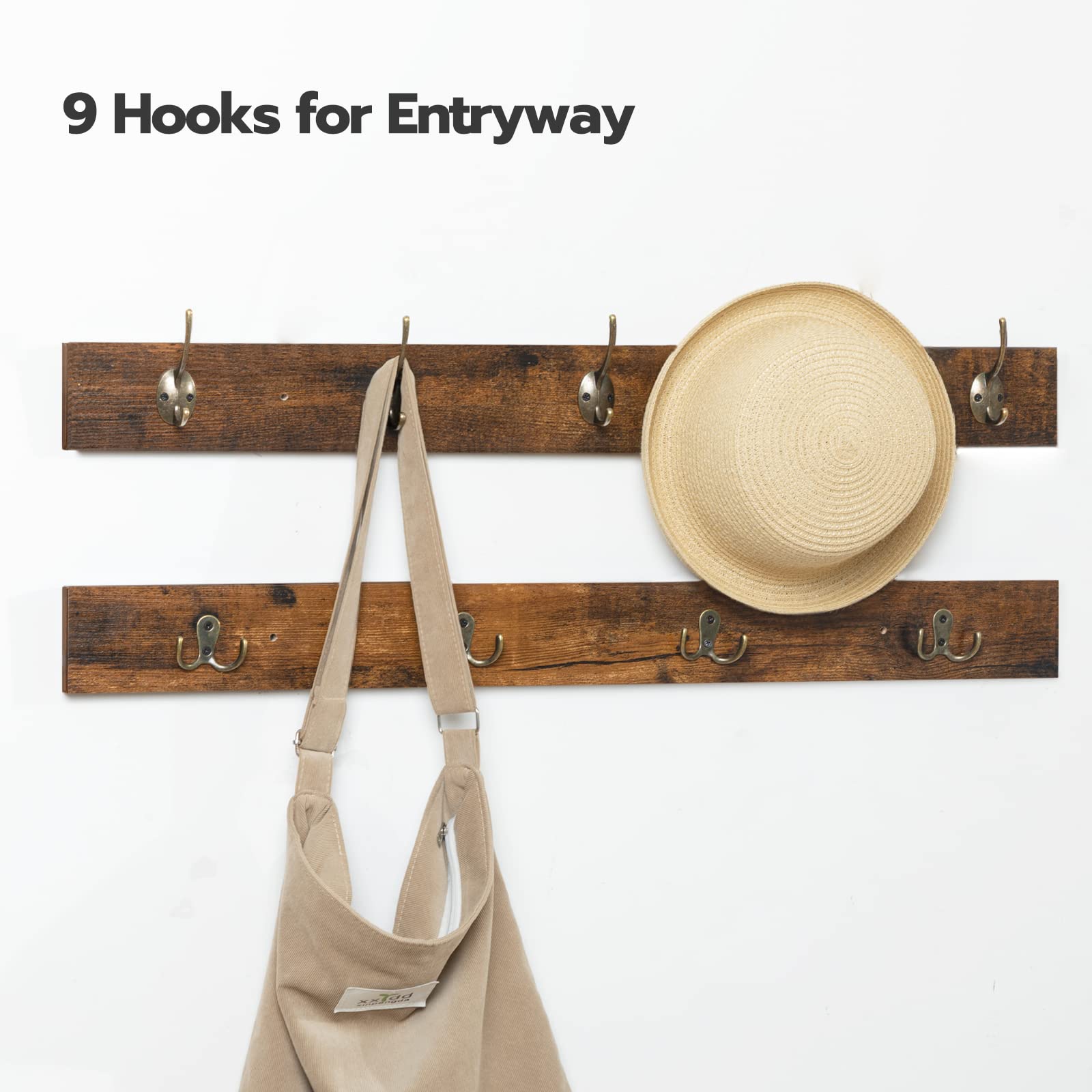 - Entryway Bench with Coat Rack: The hooks in 2 rows with a large storage bench offer enough space to hang your coats and keep your shoes organized, giving a new look to your entryway. Coat hooks on the wall hold coats, bags and other items for you and your guests. It is the right-hand furniture for keeping your hallway tidy