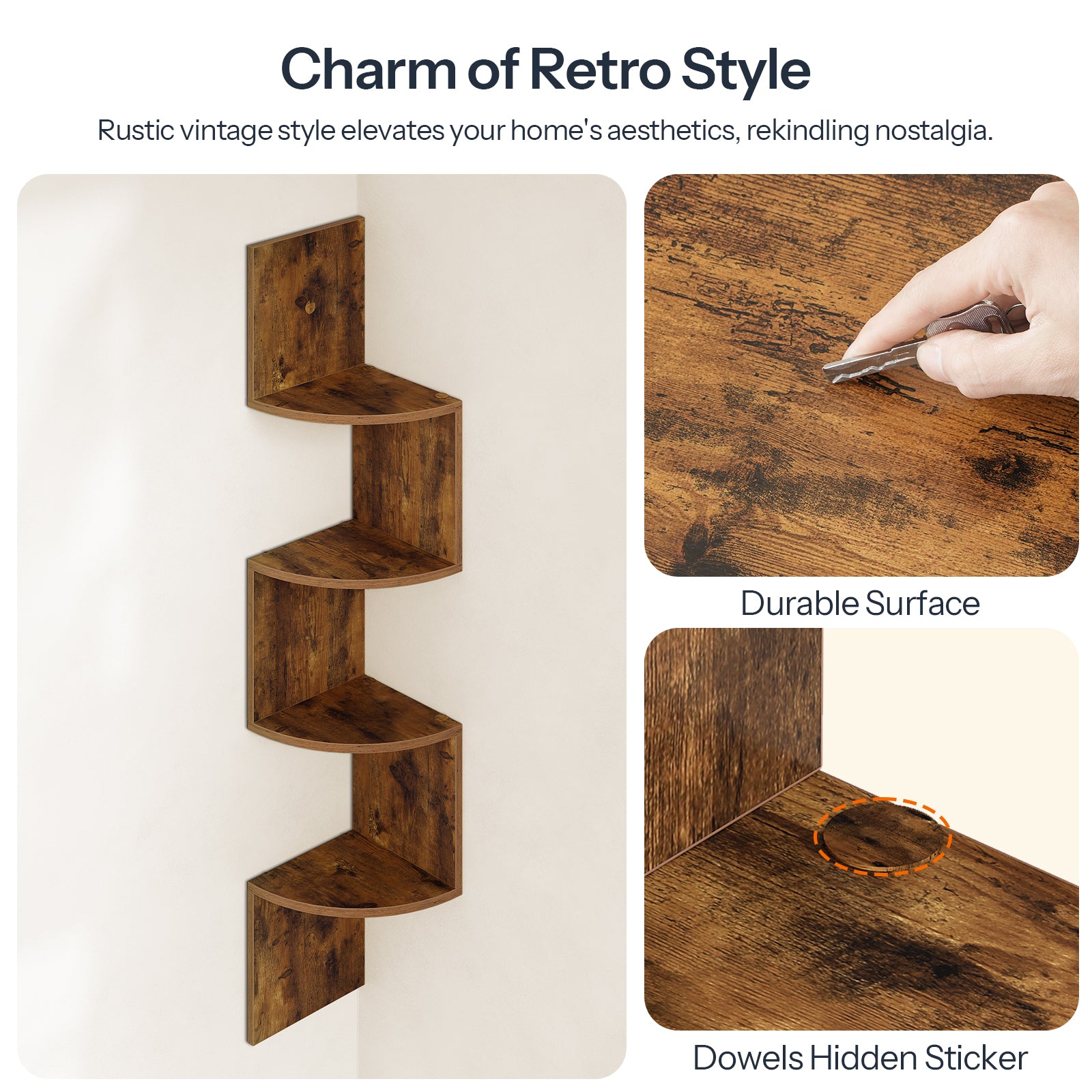 - Retro Style with Modern Functionality: This 2-piece corner wall-mounted shelf set features a Z-shaped streamlined design with curved shelves, exuding a rich retro charm. It's not only a practical wall storage solution but also adds a unique style to your living room or office.