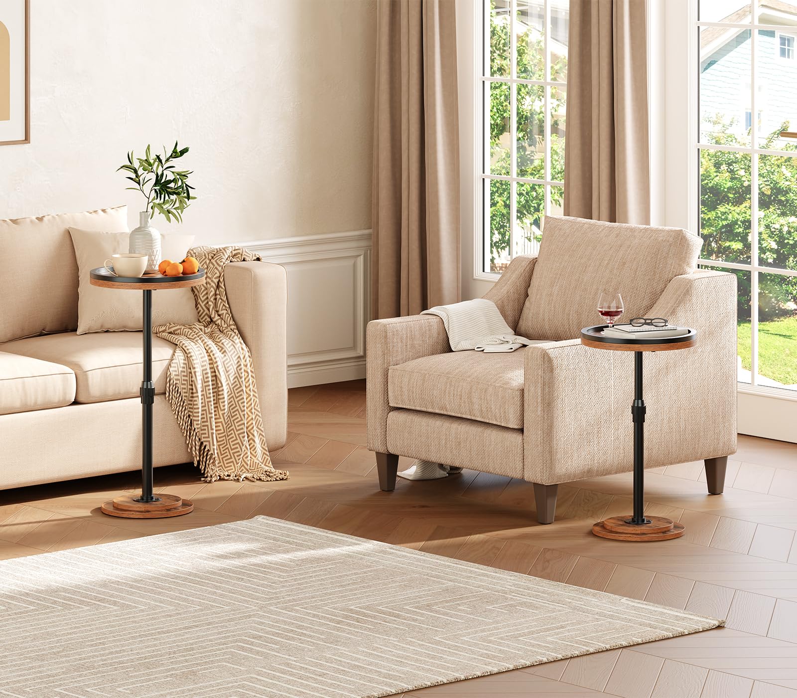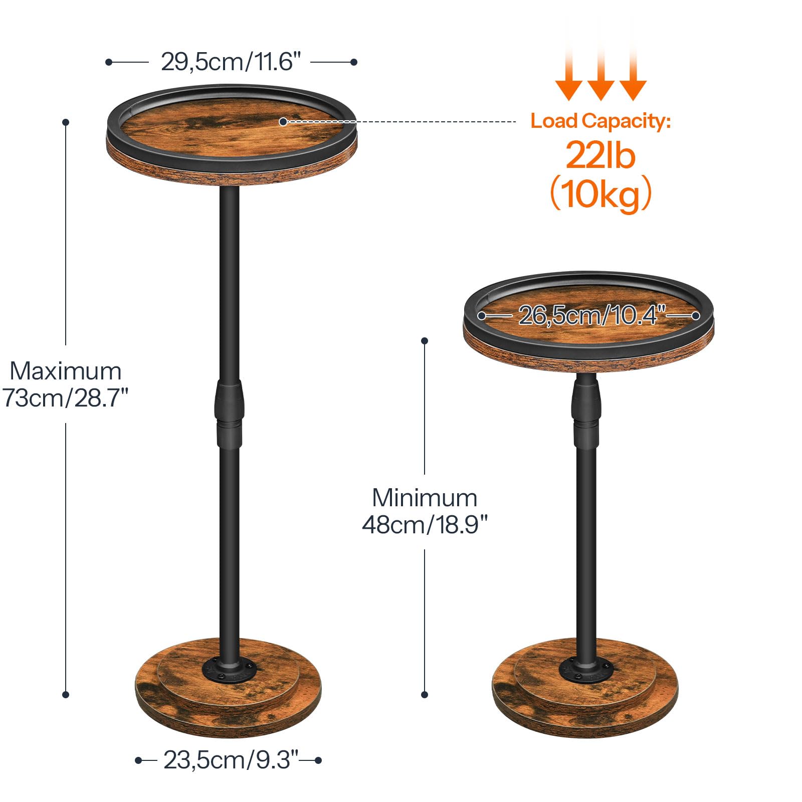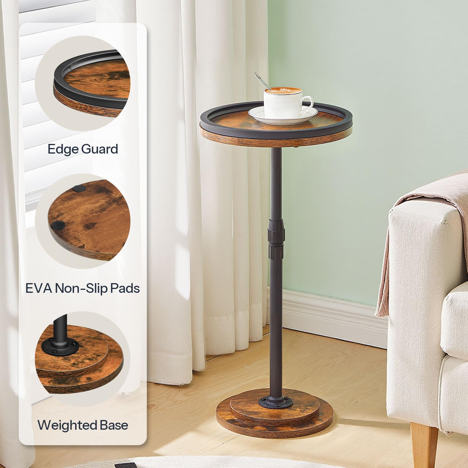 - Adjustable Height for Versatile Use - Perfect for Any Space: This round side table offers adjustable height from 18.9'' to 28.7'', allowing you to customize it to match your sofa arm or bed height. Whether used as a couch side table or bedside table, it provides a versatile solution to maximize space efficiency in your living room or bedroom. Perfect for small spaces and multi-purpose use.