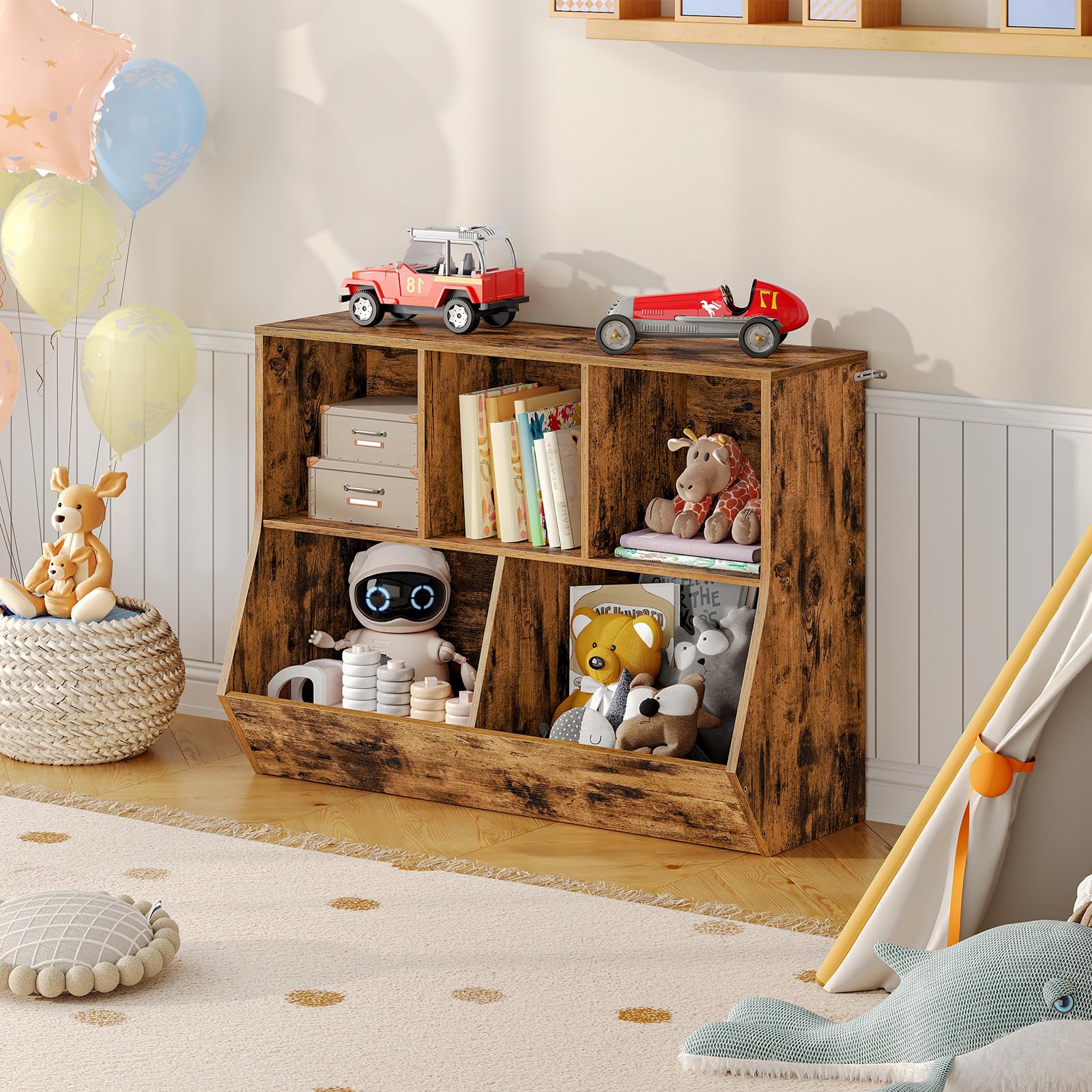 - Multifunctional Storage: This toy storage organizer has 3 open compartments, which can store children's favorite books and notebooks. 2 tiltable toy storages can provide more storage space for building blocks, small toys, dolls, etc