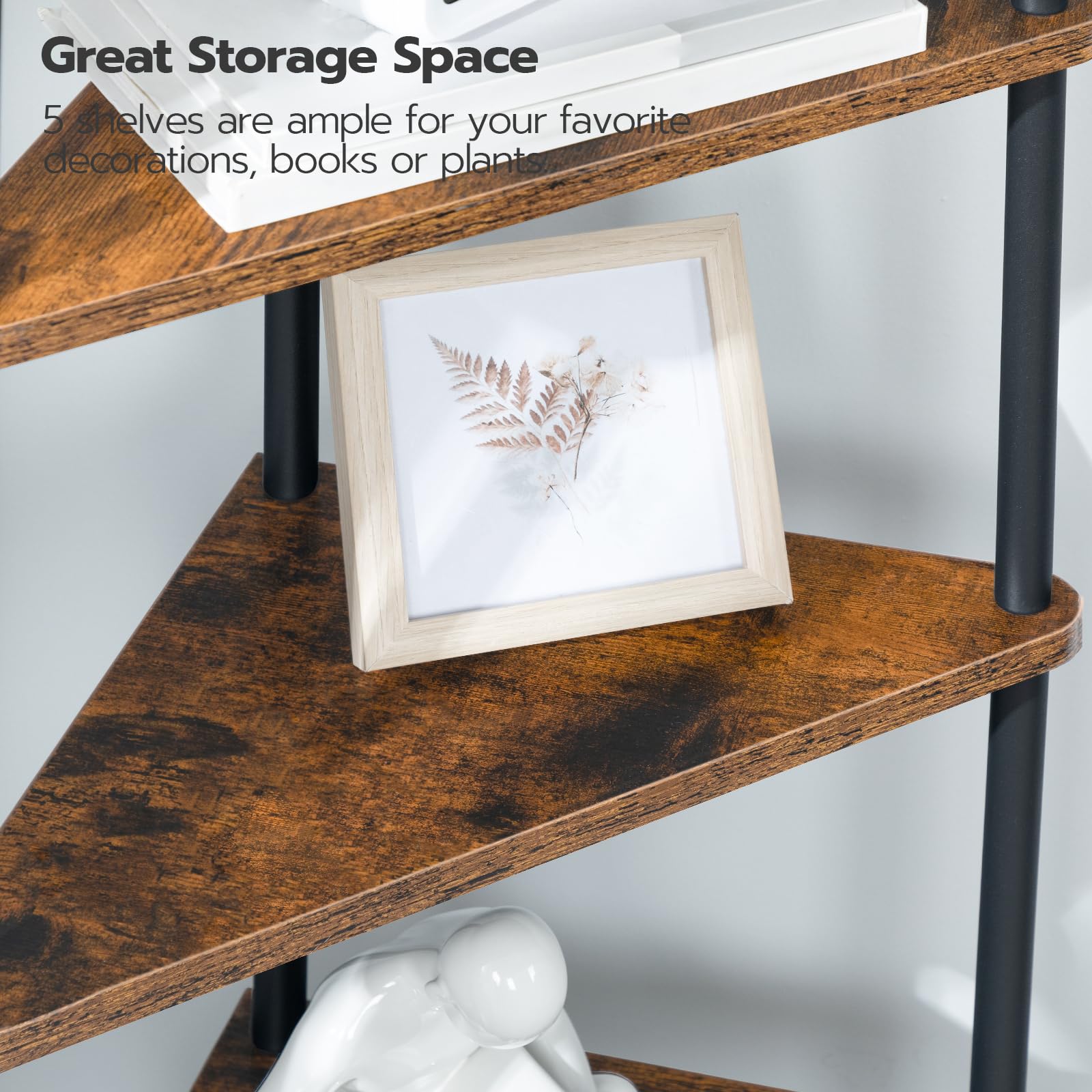 HOOBRO Retro Brown Industrial Style Five-Tier Corner Shelf
