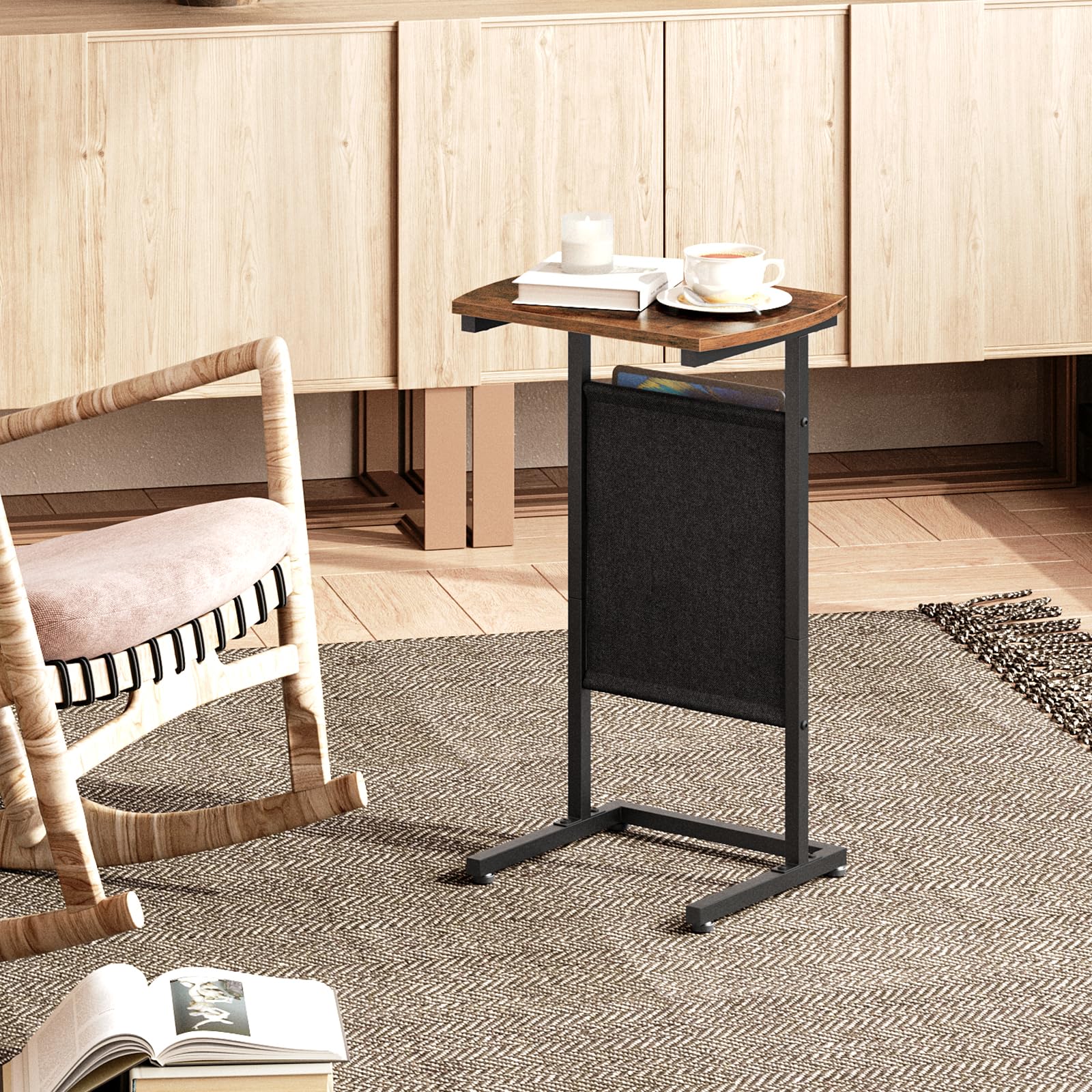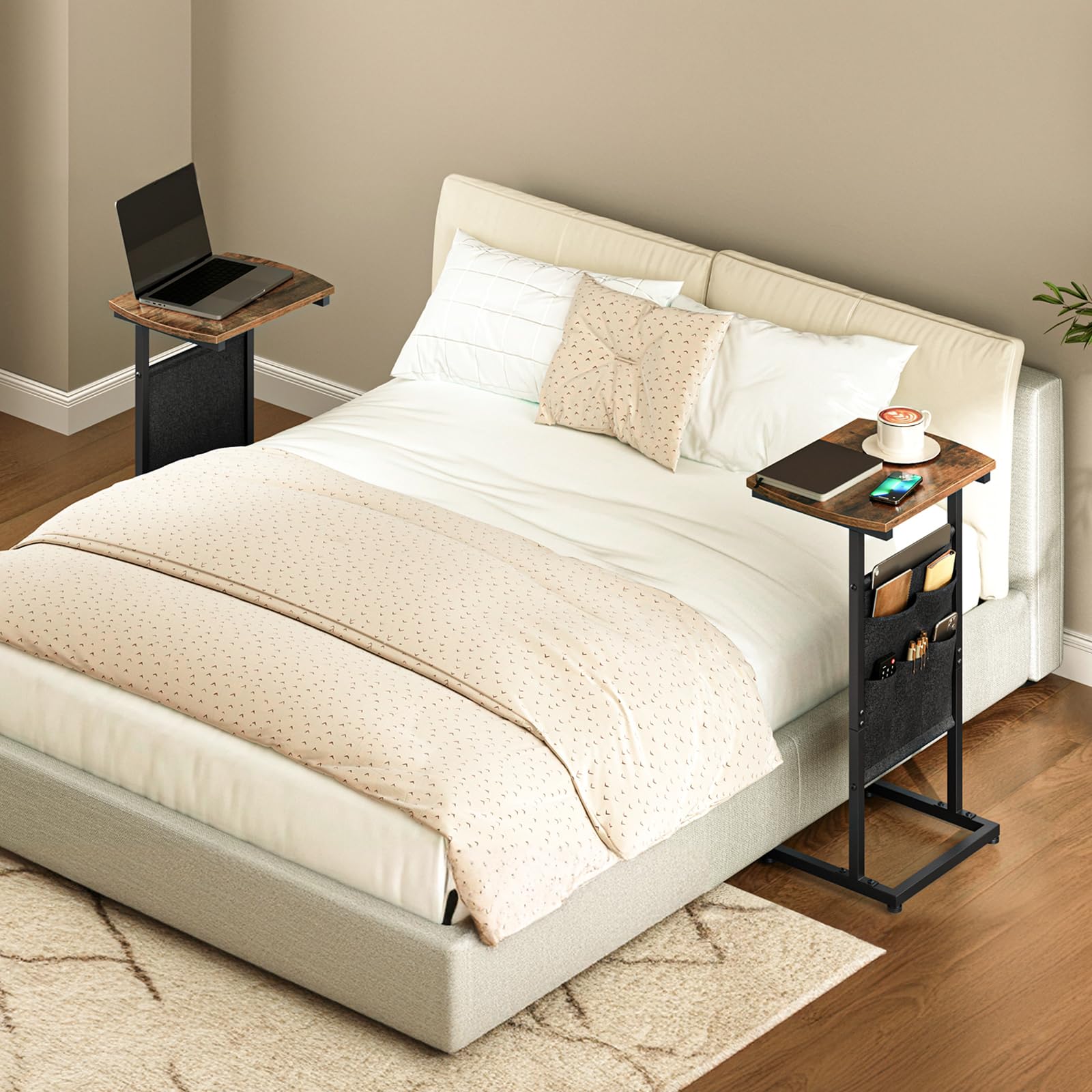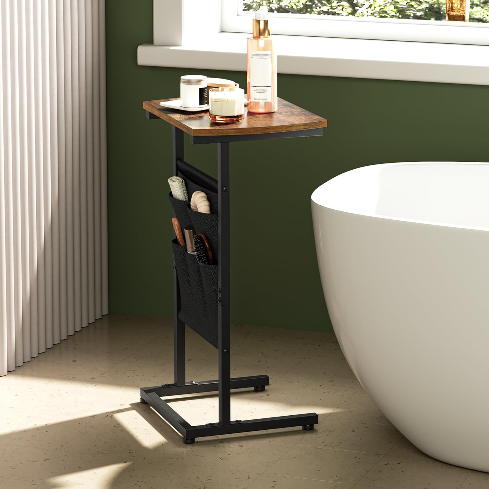 - Large-Capacity Storage Bag: This c shaped end table has a 3-tier, large-capacity storage bag, offering a home for your odds and ends while maximizing your space utilization. Whether it's a remote control, magazines or snacks, everything can be neatly stored