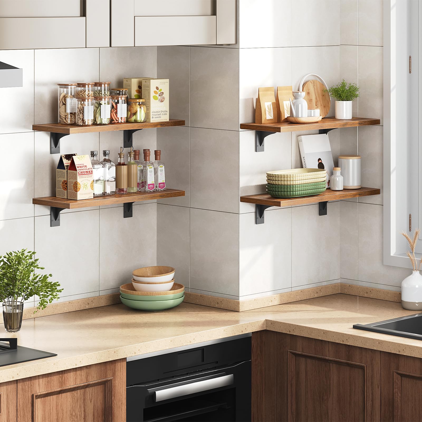 - Sturdy Construction: The floating shelves set is made of thickened and widened particleboard, resistant to deformation and easy to clean. Paired with robust metal brackets, it is thicker than other frames, and unique bracket design makes the wall shelves more load-bearing. Each bracket is fixed with four screws (one board requires 8 screws), which can be securely fixed to the wall of this floating shelves for wall. Each wall mounted shelf can hold up to 22 lb