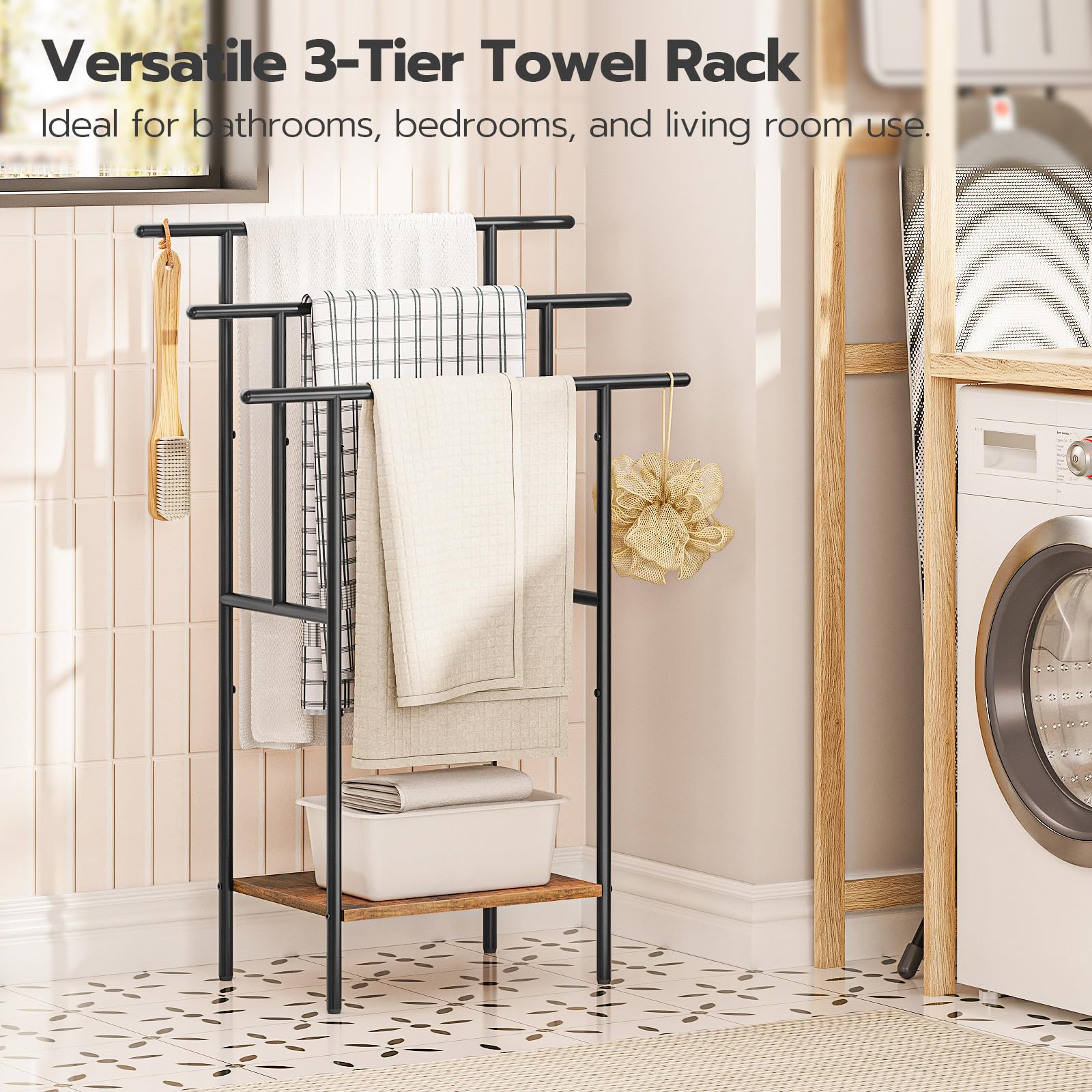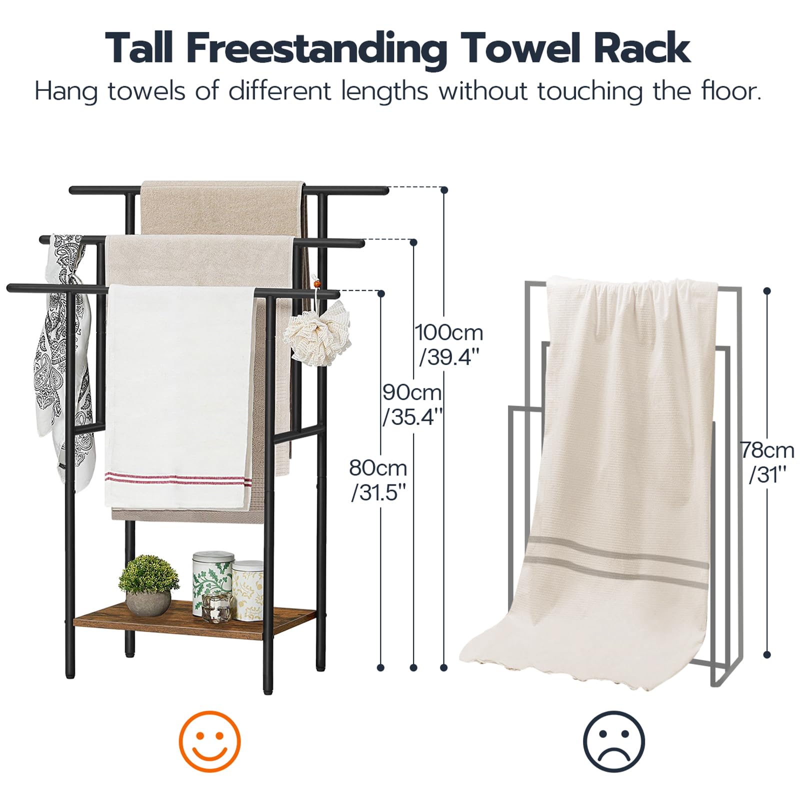 HOOBRO 39.4 inch Tall 3-Tier Freestanding Towel Rack with Shelf