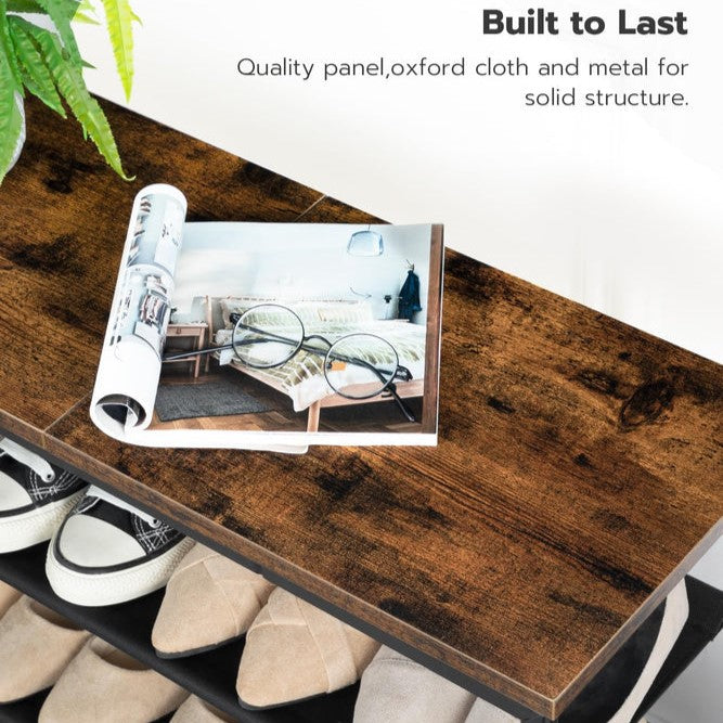 HOOBRO Industrial Retro Brown 5-Tier Shoe Organizer with 4 Oxford Cloth Shelves & Top Panel