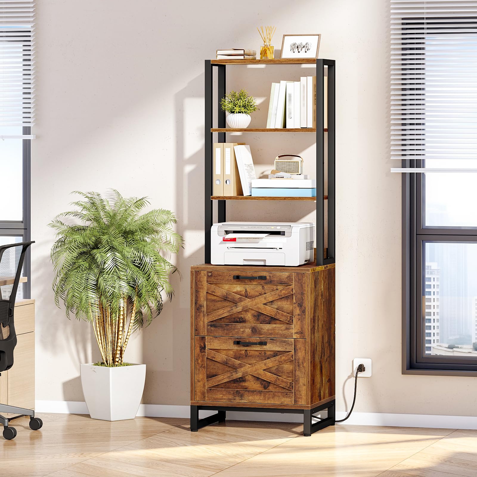 - Ample Versatile Storage Space - Organized and Efficient: This file cabinet with charging station offers 2 deep drawers equipped with hanging rods, compatible with Letter and Legal-sized folders. The open shelving provides generous space for a printer, books, albums, photos, and more, helping you maintain a neat and organized workspace. Perfect for keeping all your office essentials within reach.