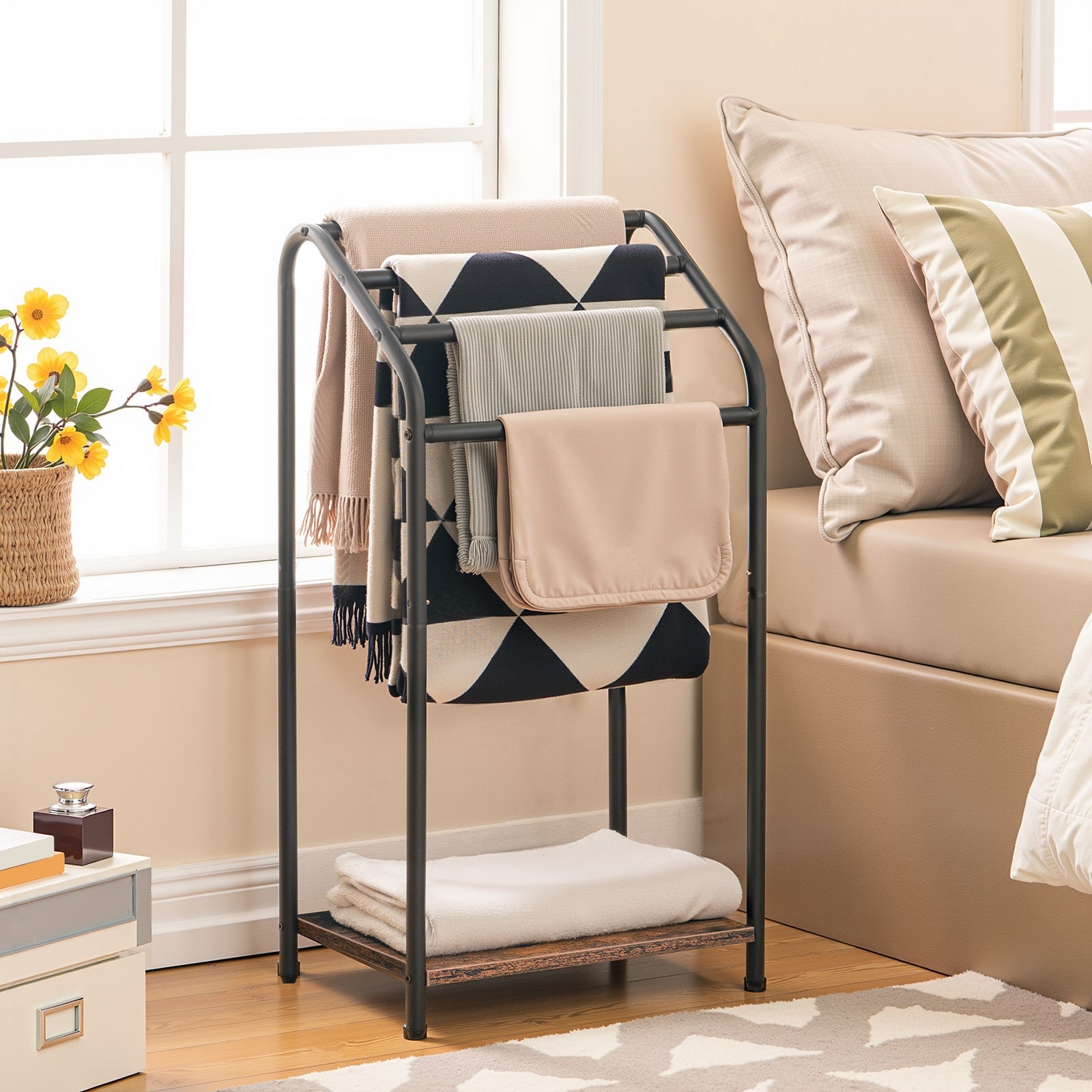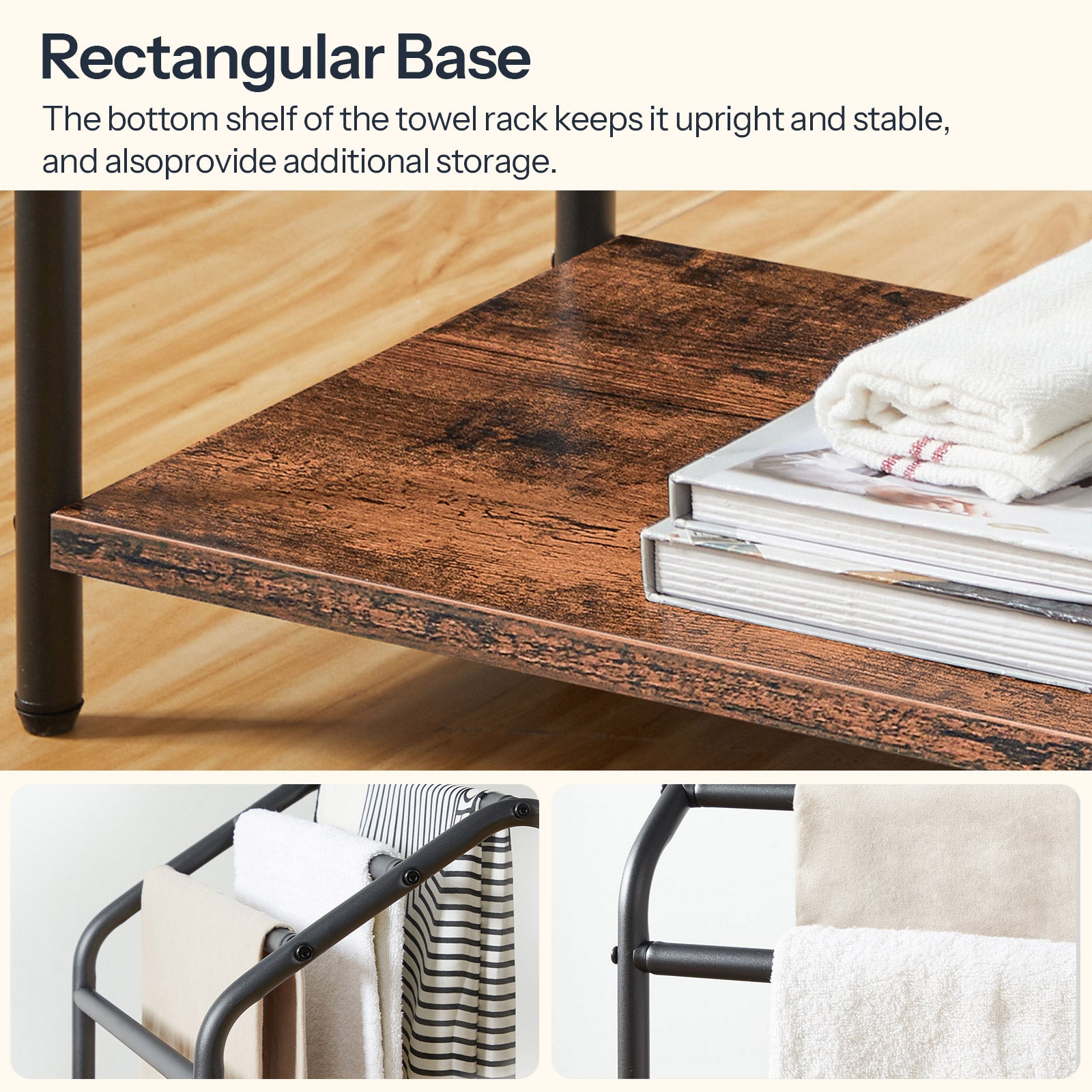 - Multi-scenario: This space-saving towel rack measures 16.3 inches (L) x 11.2 inches (W) x 31.3 inches (H), taking up minimal floor space while providing extra storage. It can be flexibly placed anywhere in the bathroom, living room, bedroom, laundry room, and kitchen, offering convenient access and keeping your home clutter-free.