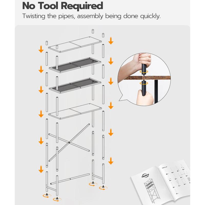 - Tool-Free Assembly: This HOOBRO bathroom organizer is designed for easy assembly. With a twist-on structure, you can quickly assemble it with just your hands, without the need for any additional tools. No more confusion with numerous parts and screws